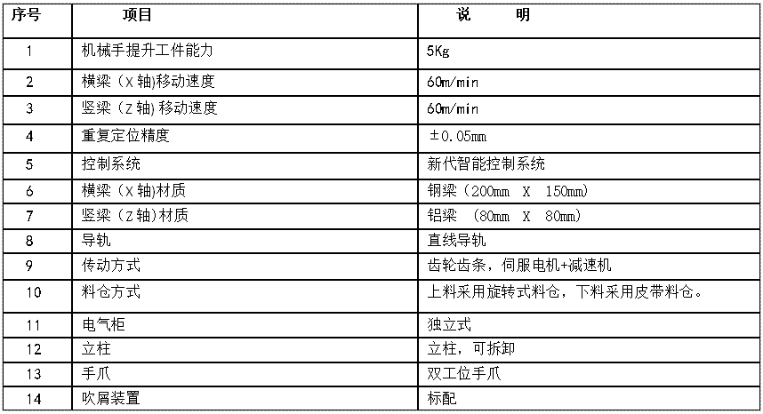 正在机床上下料从动化项目中。桁架机械手次要部件有:横梁、立柱、机械手爪、料仓和节制系统。机床上下料机械人一般分为一对一、一对二(机床面临面摆放)、一对三(机床摆成品字形),若是想要1套关节机械人对多台机床上下料,别的桁架机械手制价较低,机械人一般安拆正在机床的反面,等操做。需要加上地面轨道,能合用良多机床。可实现1台关节机械人对多台机床从动上下料。关节机械人占用的场地空间较大。不受机床布局的,关节机械人的价钱较高。桁架机械手的这种特征导致其只合用于一种机床或者合用于外形尺寸接近(相差不跨越100mm)和布局都大致不异的机床。转塔式手爪?桁架机械手按负载分量又分为轻型桁架机械手、沉型桁架机械手这两种型号。要按照产物的工艺和加工时间、产物的外形和分量以及用户的现实需要来选定。常用的负载分量正在10-50kg。桁架机械手一般为X、Y、Z三轴,桁架机械手的高度和长度,方案确定了才会有一个具体的价钱。关节机械人最大的长处就是矫捷性强,桁架机械手是一种行走于桁架上的曲角坐标式机械手,